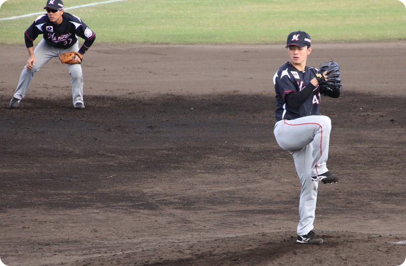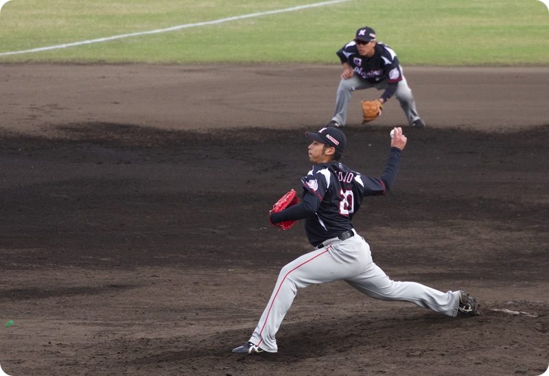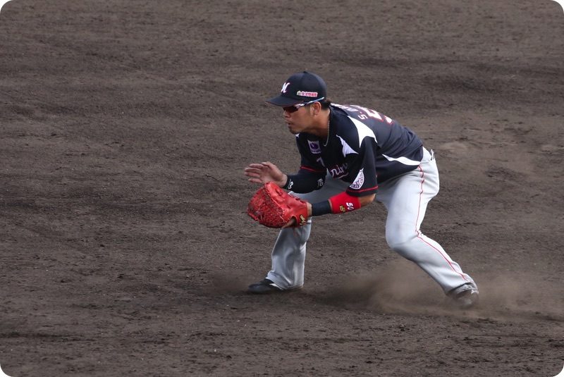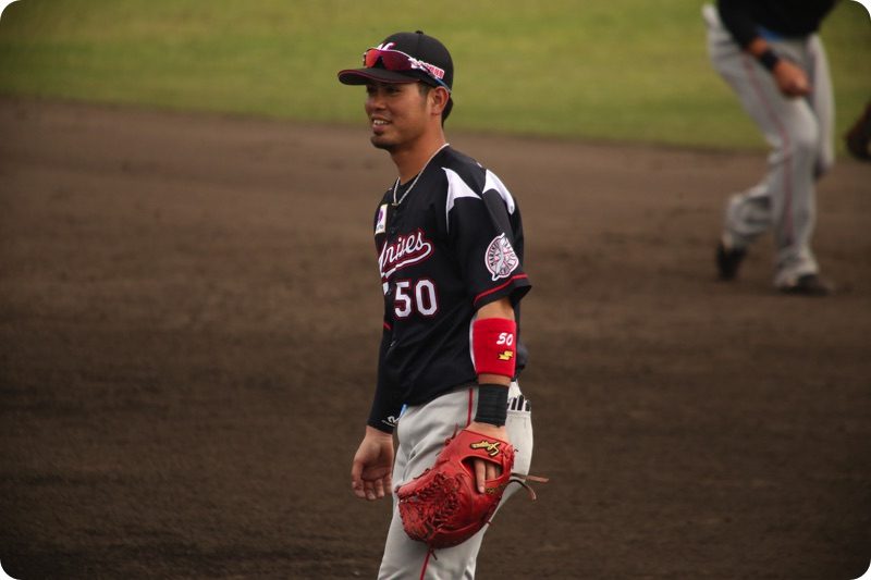 まずはレフト外野席から撮影。大嶺翔太選手。