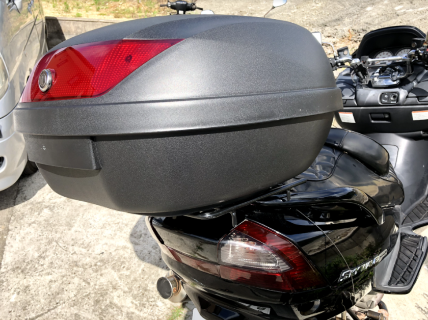 バイクの座席の後ろに大きめのボックスがあると重宝します。