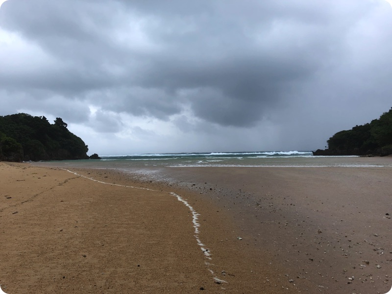 底地ビーチ。なぜかこのビーチの名前を知っているので連れて行ってみました。「いつもは泳げるのよね?」ととにかく泳ぎたい感じ。