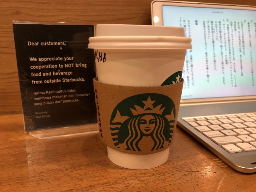 スタバ内Wi-Fi環境悪く歩いてポイントを見つけようやくネット接続。ブログを書いています。