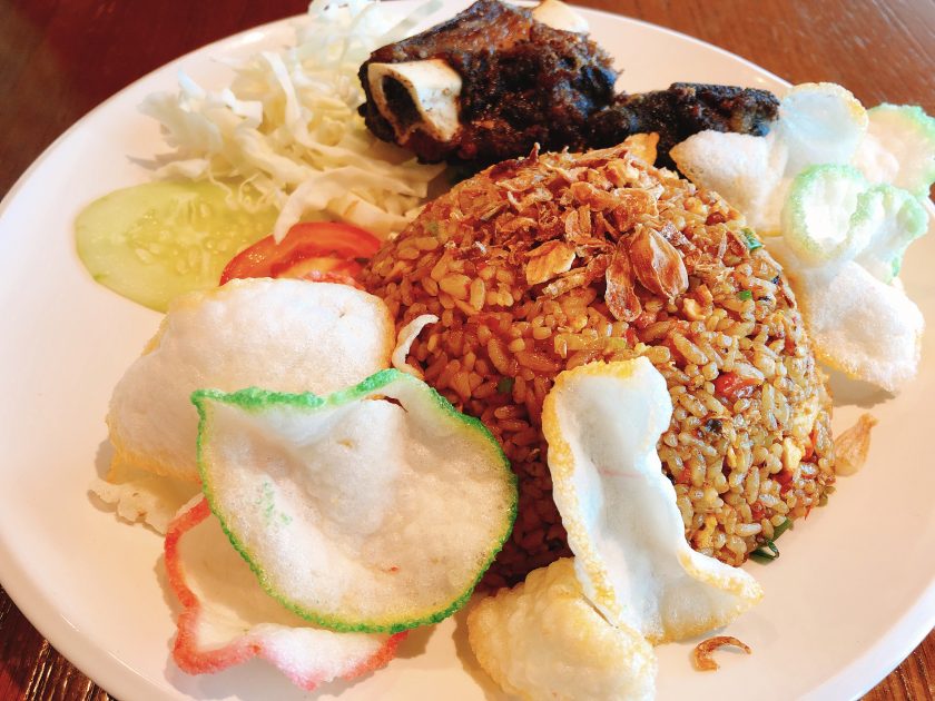 ナシゴレンとココナツジュース。1,000 円くらい。