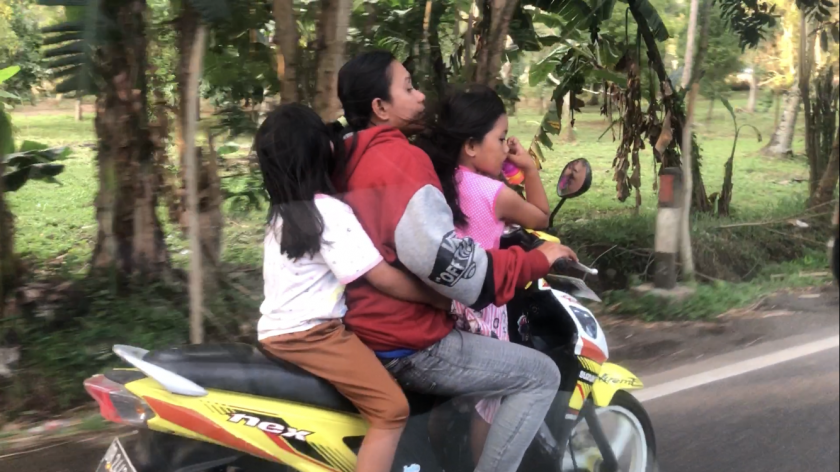 バイクの3人乗り当たり前、ノーヘル、ナンバーなしも多い。これは帰ってからビデオをアップします。
