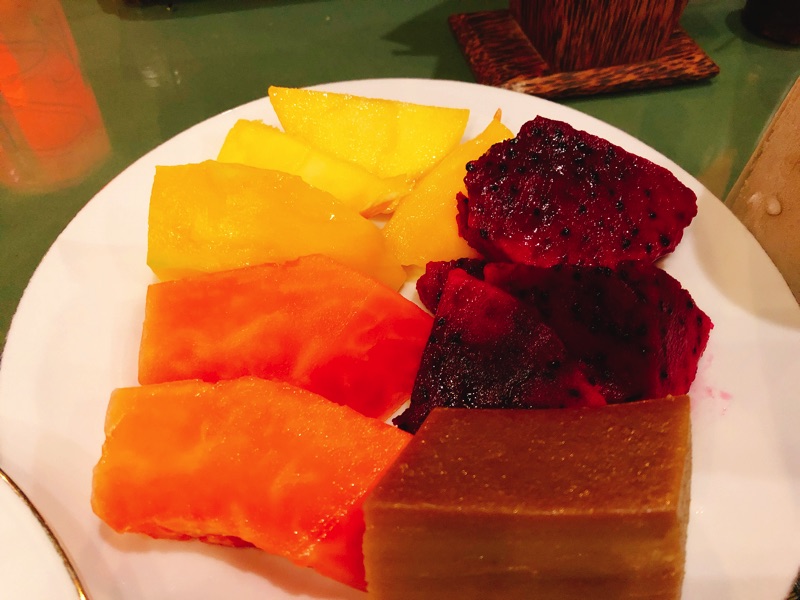 デザートにフルーツも食べられる。この日のフルーツは豪華で、マンゴー、パパイヤ、ドラゴンフルーツだった。ただし、マンゴーの味は今ひとつ。 あと、手作りのスイーツもあった。