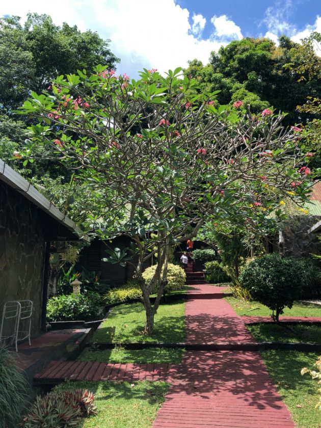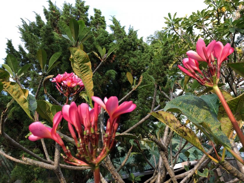 花があちこちに咲いている。台風が来ないためかプルメリアが大木となっている。