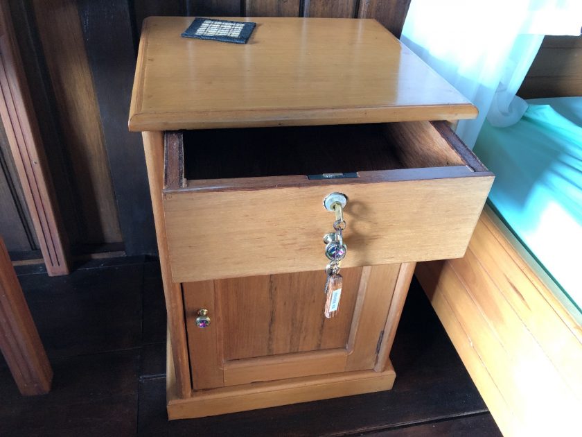部屋の中にはこんな感じで机があり、施錠できる。パスポートや財布はこの中に入れておける。