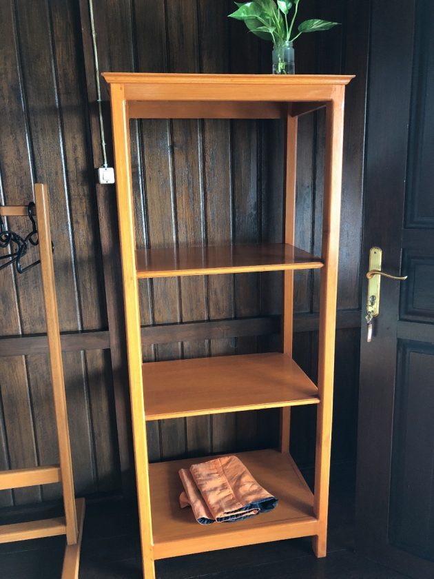 この棚には洋服、下着などを置いておける。(一番安い部屋なのでグレードの高い部屋はもっと違う仕様かもしれない)