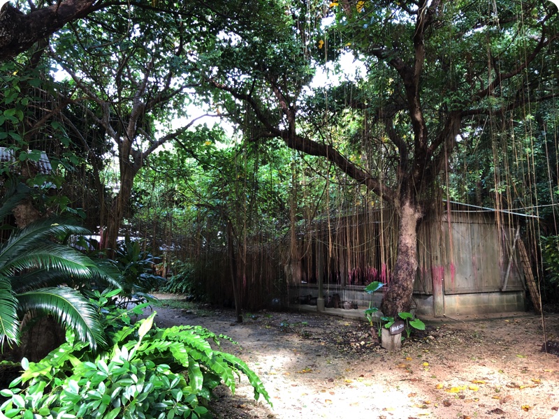こちらもガジュマルのスポット。この根の間に入るとパワーが入りそう。