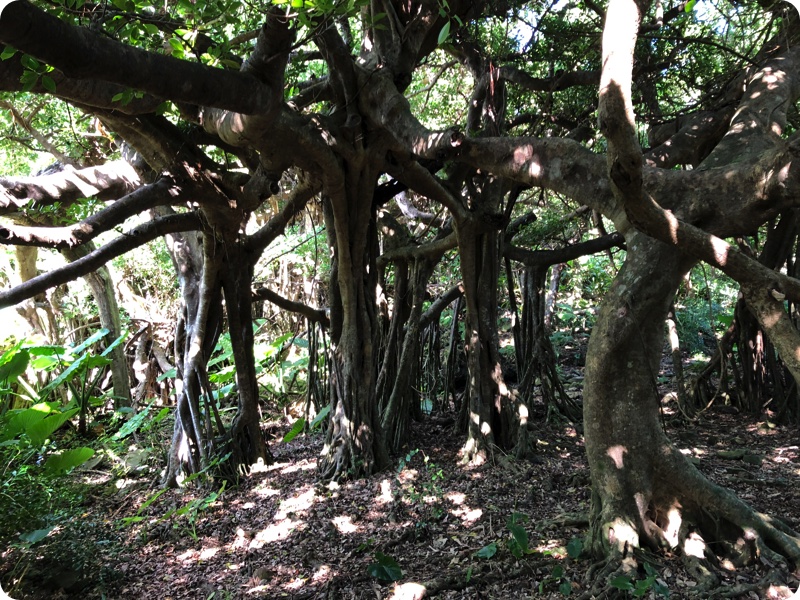 がじゅまるの根がたくさん垂れ下がっていて不思議な場所です。最近は撮影で使われることも多くなりました。
