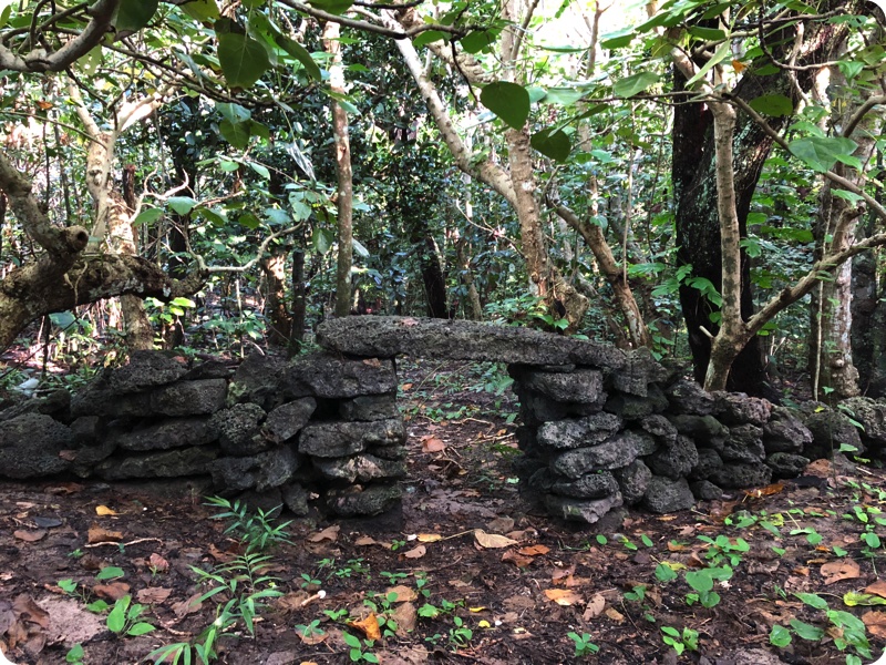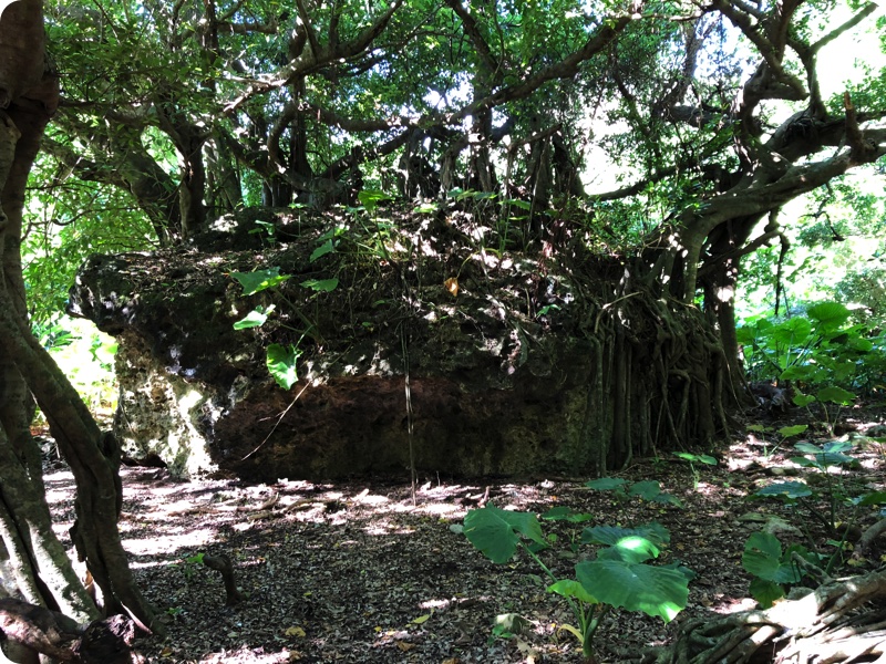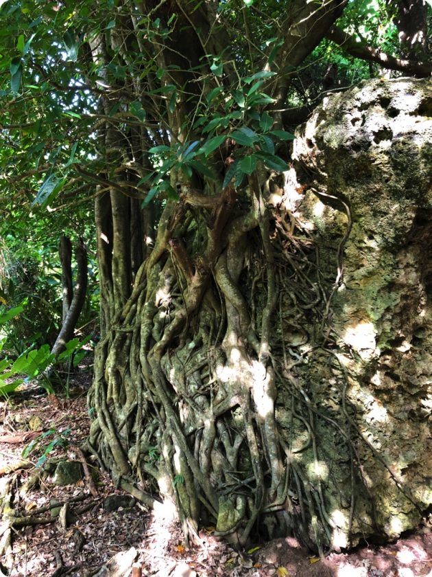その岩の上に大きなガジュマルが根付いており、時の経過を感じさせます。よく土の栄養がないのに育ったものです。