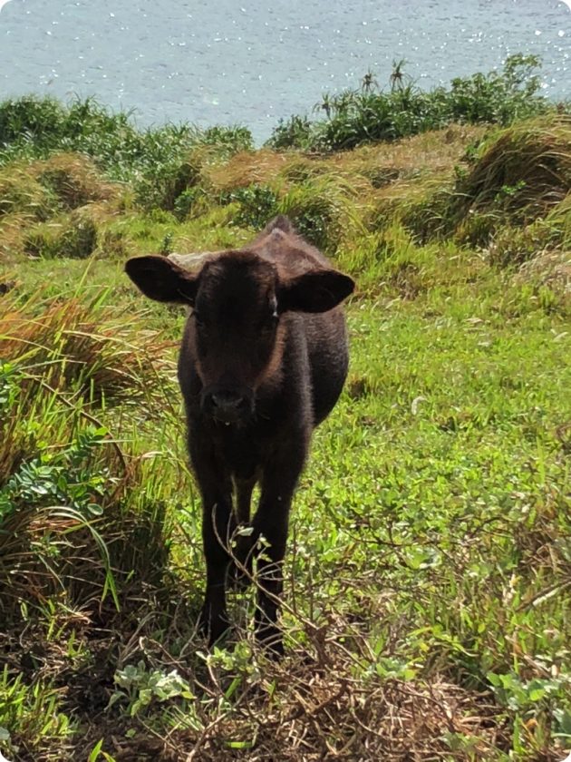 仔牛にもあいさつ。いろいろな動物がいます。(この場所は行ける時と行けない時があります)