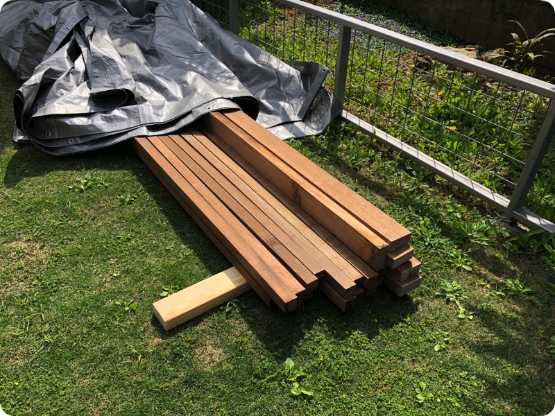 アピトン材って杉材と比較して重く、ずっしりくるのでびっくりした。「アカマツ」をすすめられたが石垣には入手不可能のようだ。