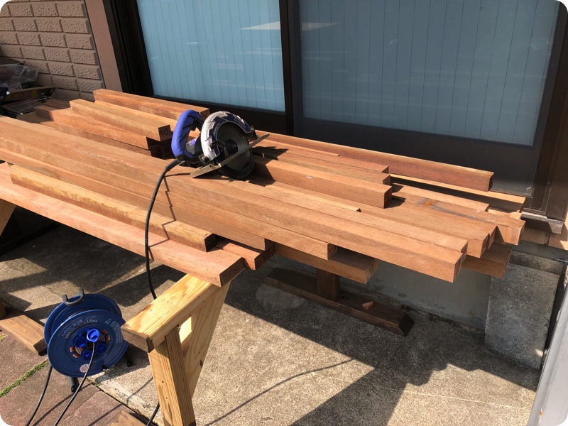 今日はとりあえず、4mの木材を寸法表に沿って切断する作業をした。