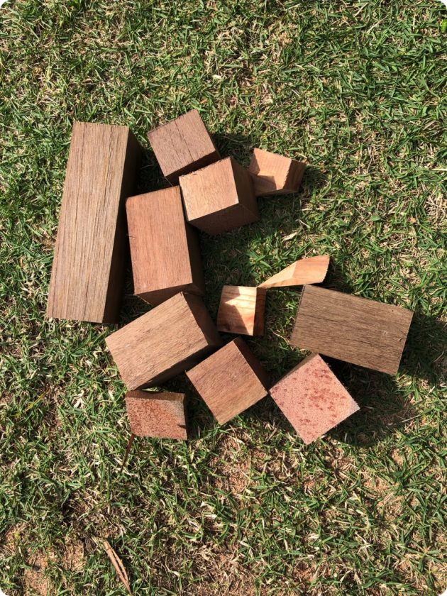 長い木材から切っていくのがポイント。余った木材はこれだけ。計算通り。