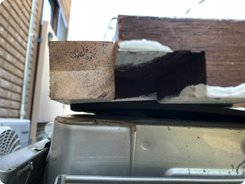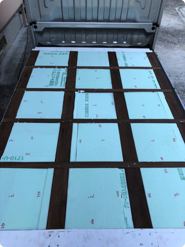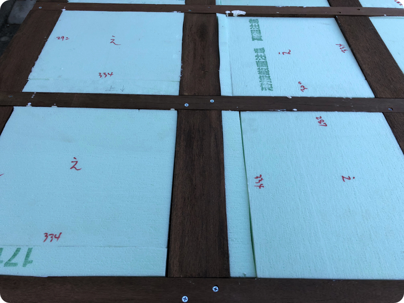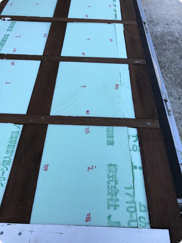 とにかく全ての面に断熱材を入れますが、この床の部分は材料が足りず、すべてつぎはぎで。