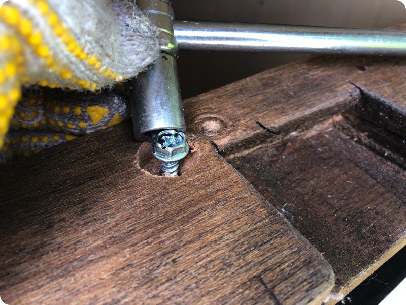 午後、再度メイクマンに行き、木材用ネジを買う。鉄筋用より10mm短い60mmだが、溝を掘ることにより、深くネジこむことができた。