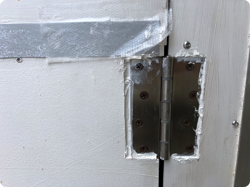 午前中はベニヤの接続部分をガルバニウムの板を切断し、上から変成シリコーンで接着。