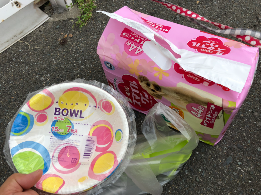なんと、みるくとララのトイレシーツをもってくるのを忘れていました。またごはんを食べるためのお皿もなかったので買いました。