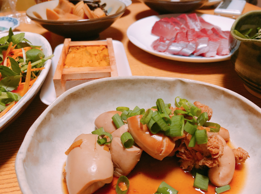 夕食は民泊のうちで地元の食材を買ってきたものをたべさせていただきました。