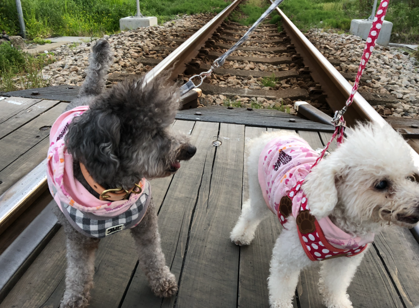ミルク、ララ、これが線路というんだよ。しかも単線だよ。
