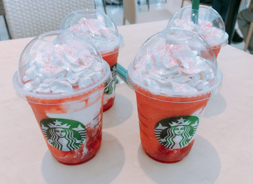 シェアハウスの人がみるくとララのお別れをしに来ましたので一緒にスタバでストロベリーフラペチーノを食べました。