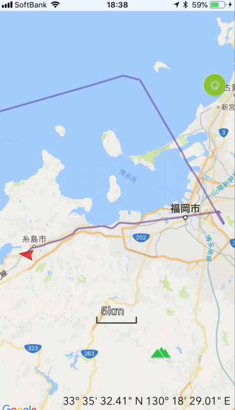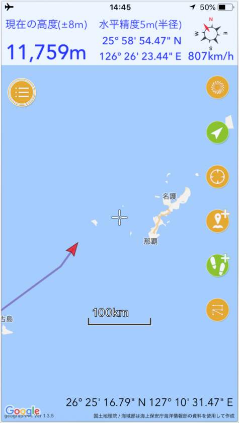 スマホのアプリでどこを飛んでいるのかわかります。高度も時速もわかるのがいい。