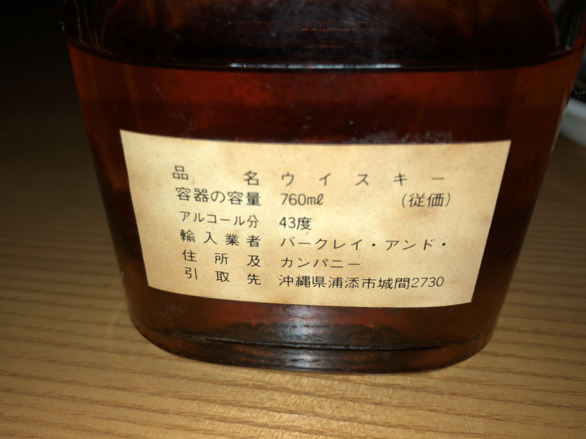 沖縄復帰直後のジョニ黒をいただくこともできました。45年近くたつ古酒になります。