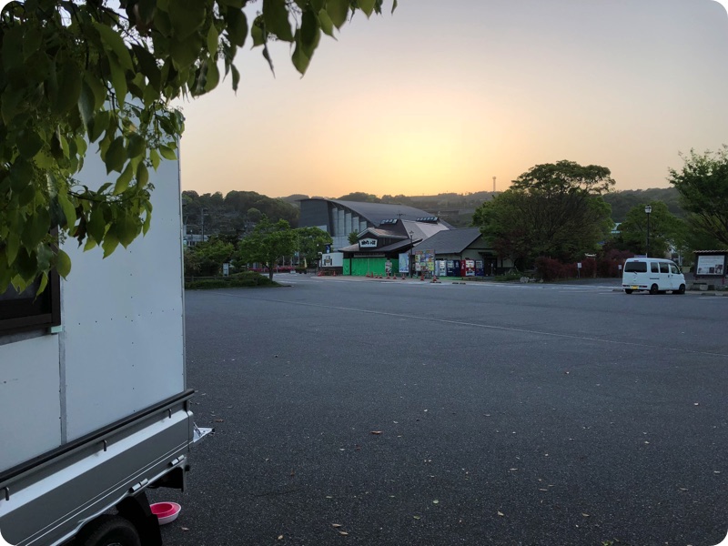 こんな感じのところ(RVパークそのぎの荘)に泊まりました。たまに車や電車の音が聞こえてきますが、比較的静かなほうでは。2,000円の有料コースもあるようですが、メリットは100V電源を使えるのと、ゴミを捨てることができること。