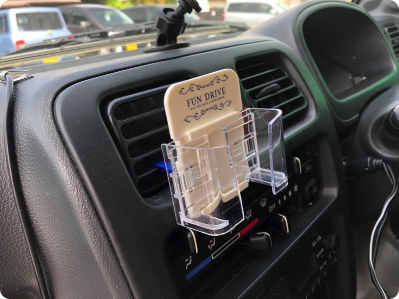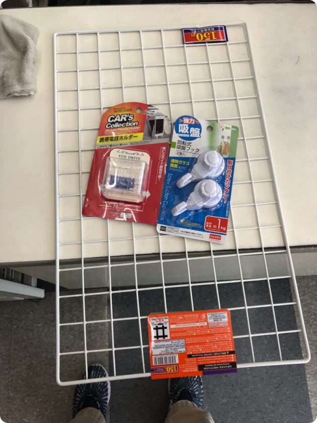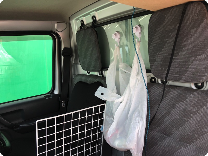 運転席の助手席を仕切る網を購入。ゴミ袋をかける吸盤フック、iPhoneの置き場を購入。