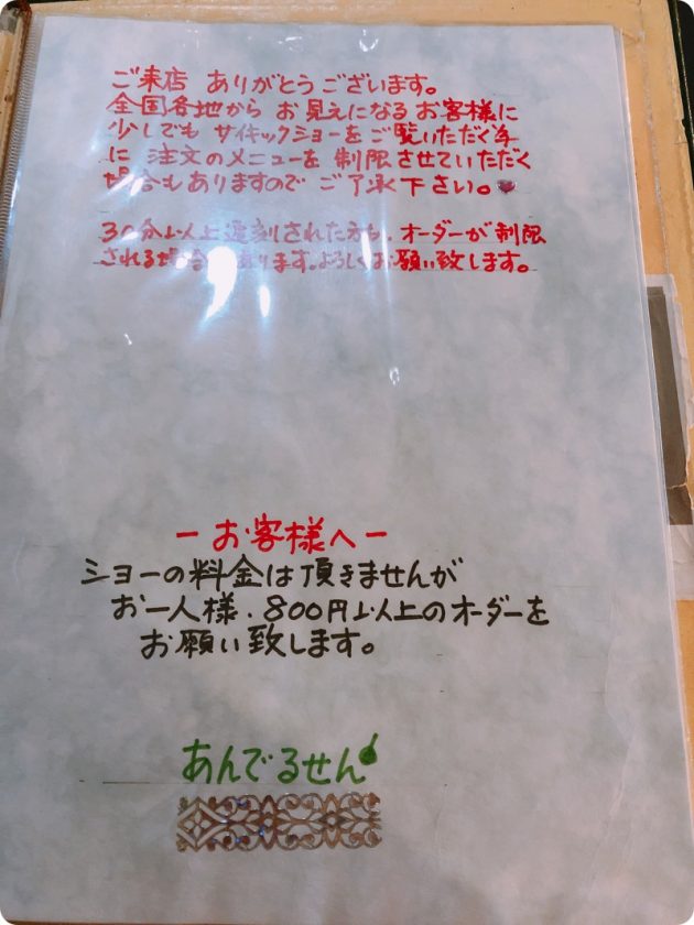さて、今日はあんでるせんに行く日です。2〜3カ月前に予約を取りました。
