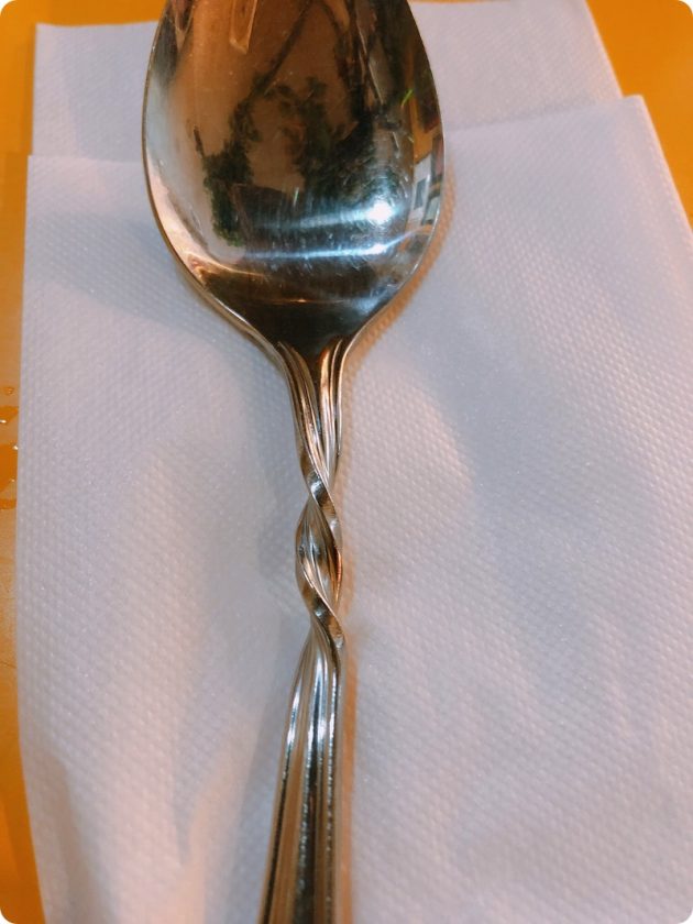 おやっ。スプーンがねじれてる。