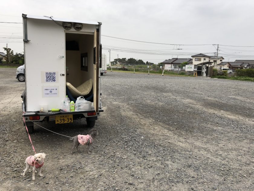 みるくとララは柵をして運転席に来れないようにしている。ダイソーに行くたびに軽トラが進化していく(笑)