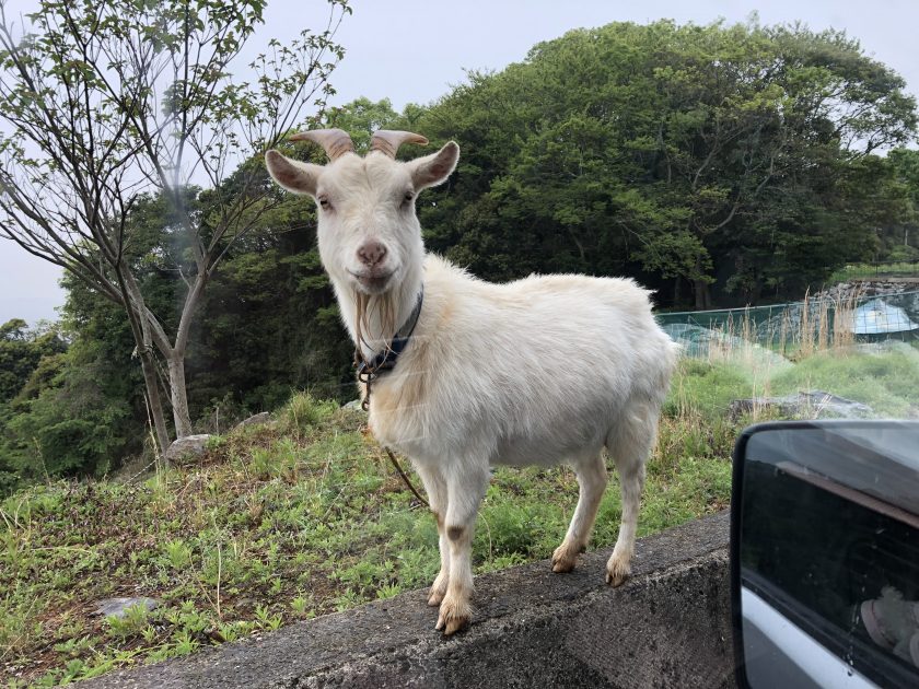 持ち帰りして、展海峰(てんかいほう)という最近できた展望台に行く。いぜんココペリ1の隣にいたユキオにそっくりのヤギがいた! 空間移動したか? よくなついていた。