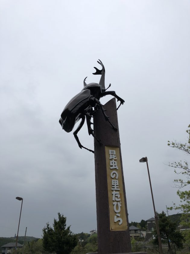 このカブトムシのモニュメントが巨大で見事。よくできていた。