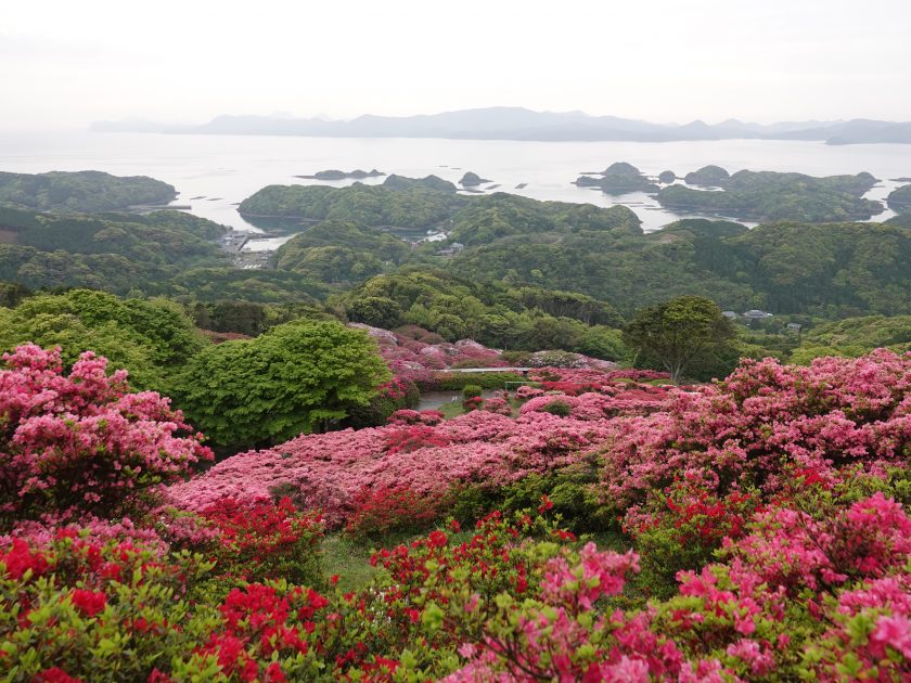 次は、長串山公園ということろにツツジが咲いているということなので行ってみる。17時閉園で16:30に着く。駐車場で見事に咲いていて感動。この写真を撮影後帰ろうとしたら係員の人が来た。
