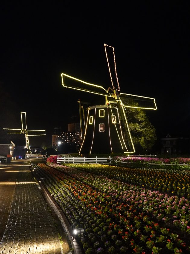昼間は花が楽しめるし、夜はライトアップを楽しめる。これはどちらもいなければだめだ。