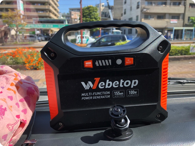 新しい充電器。こちらは常に車のバッテリーからチャージして予備。太陽光で充電したものがつかいきったらこちらに切り替えるつもり。
