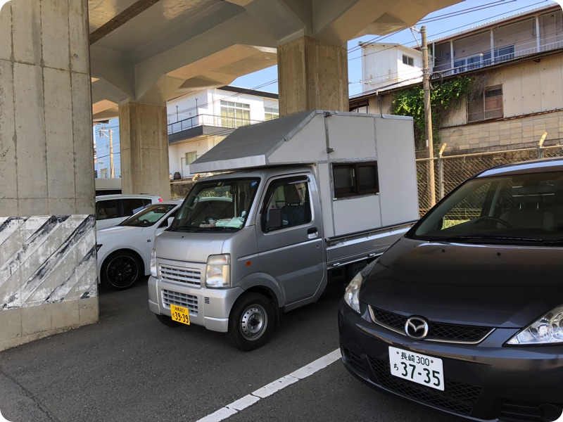 次は駐車場に。調べたらけっこうなお金をとられそうなので、県営駐車場に。