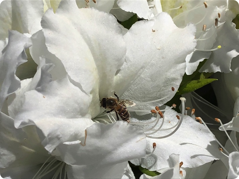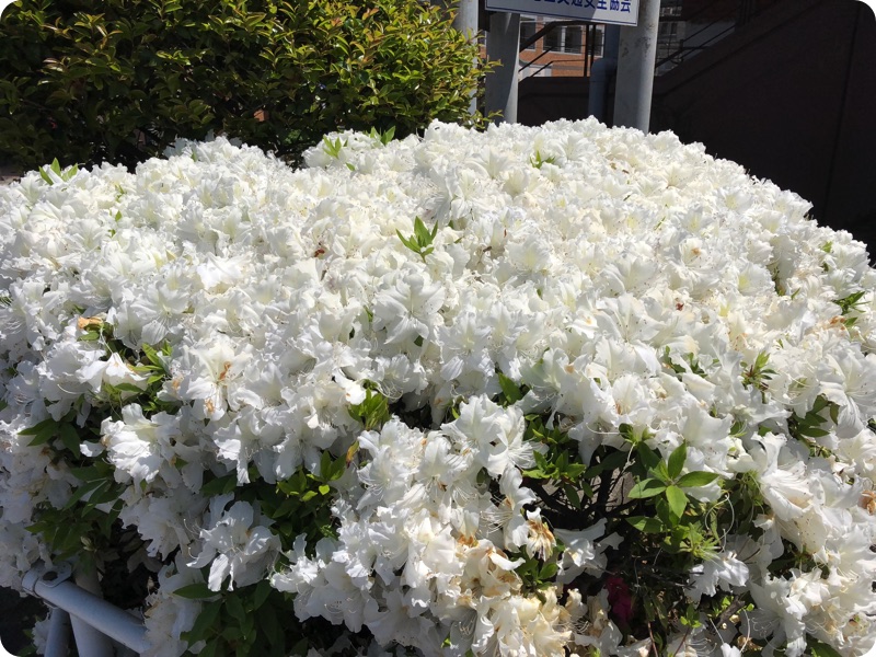 ブーゲンビレアやハイビスカスの白を見ると「ホッ」とするがつつじも白はいいね。自分は白い花が好きだ。純粋なシンプルさがいい。