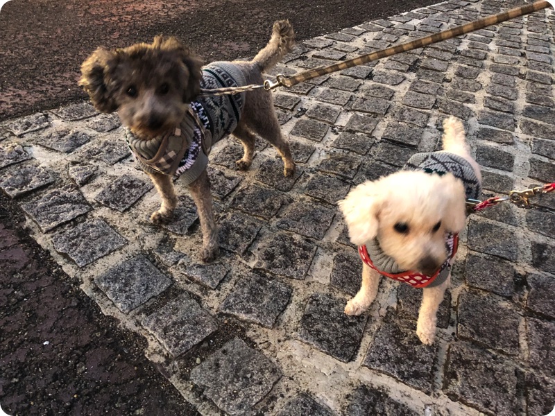 外は9度。みるくとララは寒いけど、裸のままトイレに連れて行く。