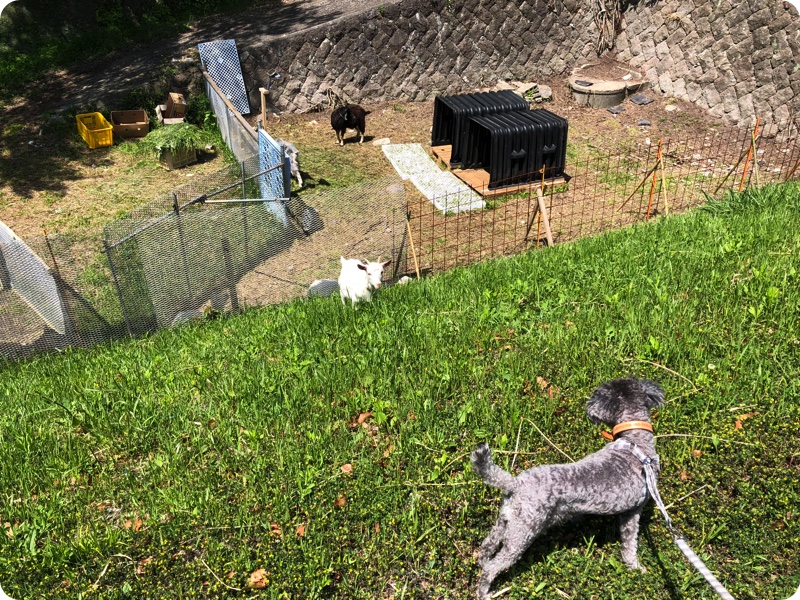 ヤギが囲いの外にまででて草を食べていた。その気持ちはわかる。