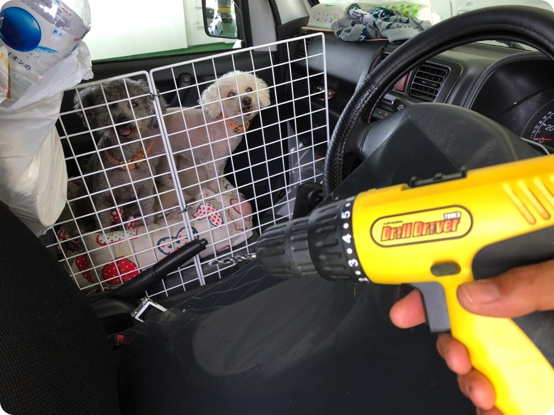 船の中は、みるくとララが助手席でリラックスできるよう、工事作業。