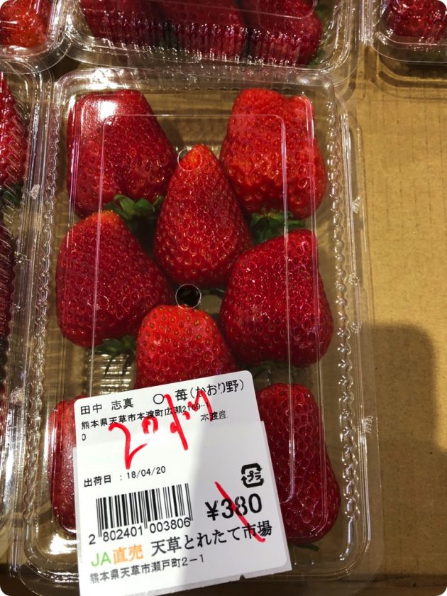 イチゴのこちらが20%オフなので買いました。会計後すぐに食べました。おいしかった! イチゴを食べるのは久しぶり。