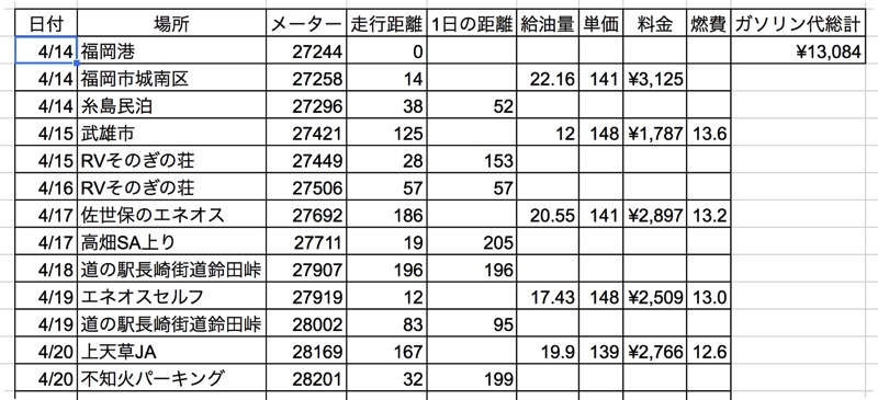 今までの走行距離はこんな感じ。燃費は落ちた。