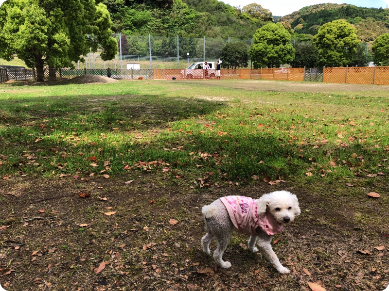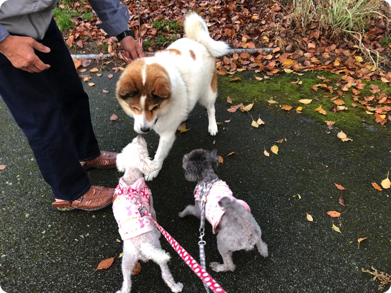 おじいちゃんワンコとも友達になりました。もう目がほとんど見えないのだとか。老人夫婦の2人旅につきあっているようでした。