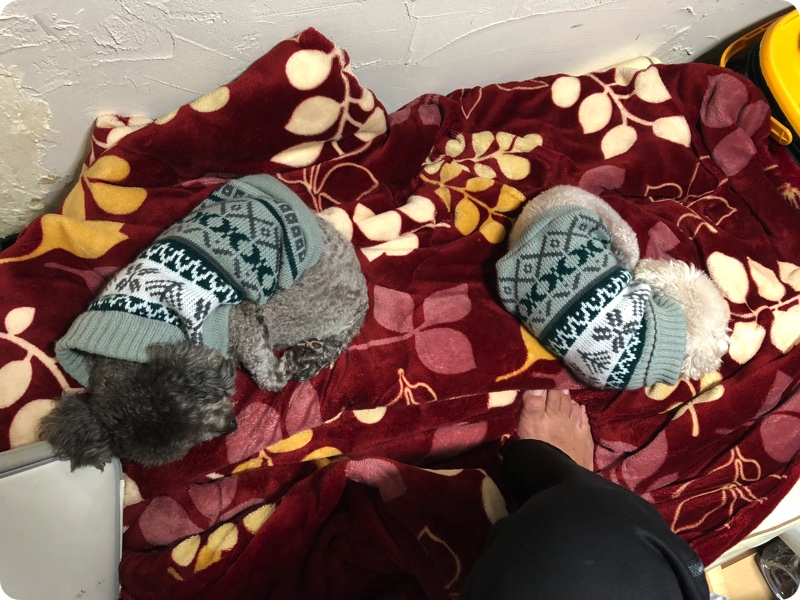 客室に入らなければいけないらしいが、暗い中でみるくとララがかわいそうなので、シェル内に入る。みるくとララは安心したようで寝ています。