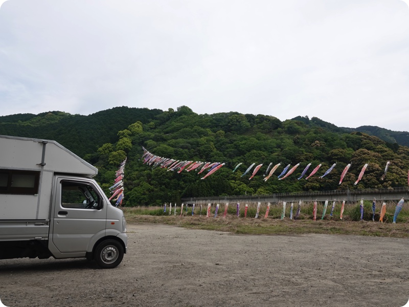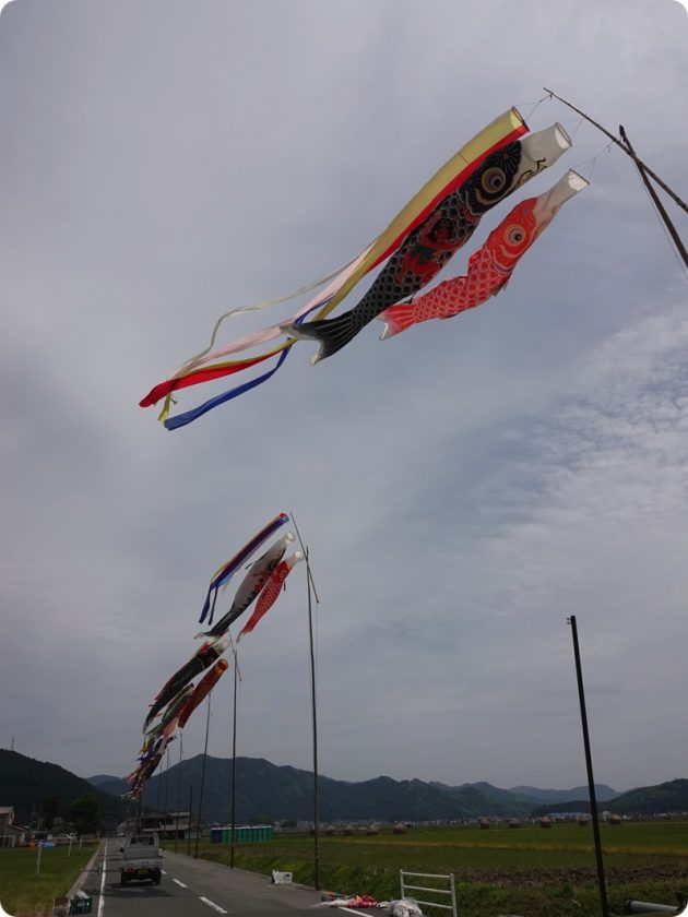 途中、コイノボリがすごい場所がありました。第42回宇和れんげまつりの準備が行われていたようです。