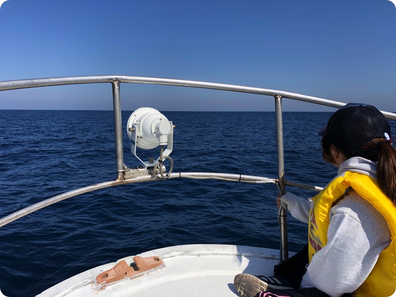 自分も船首でずっと探していたけど、2時間40分探して何もでない。これだけの大海原、いるはずがないとも思える。