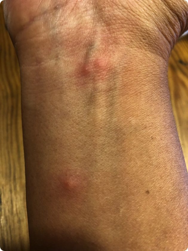 昨日から手と足にこんなできものができる。石垣にいてできた記憶がないので、本土に帰ってくるとできる病気か。魚の何かがあたったのかな。とにかくかゆくてたまらない。明日はキンカンを買おう。