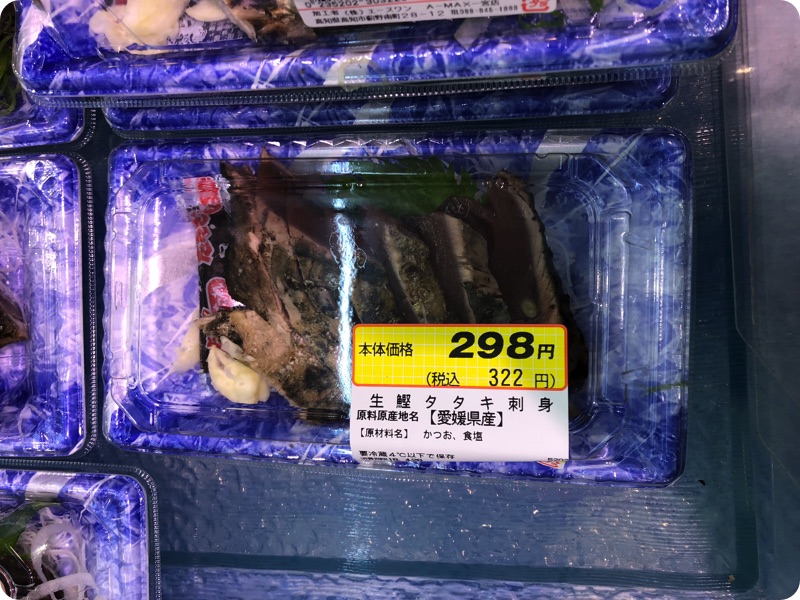 スーパーも隣にあったのでとりあえずカツオのタタキ食べました。愛媛県産という(笑)