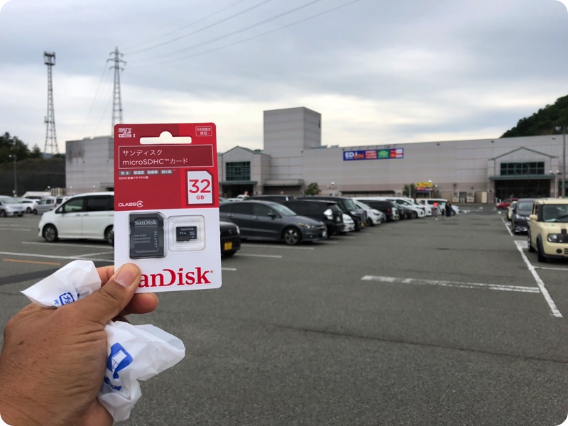 ドライブレコーダーのメモリが壊れたようなのでエディオンで約2,000円で購入。でかい店はいいが、歩く距離がやたらと長くなる。